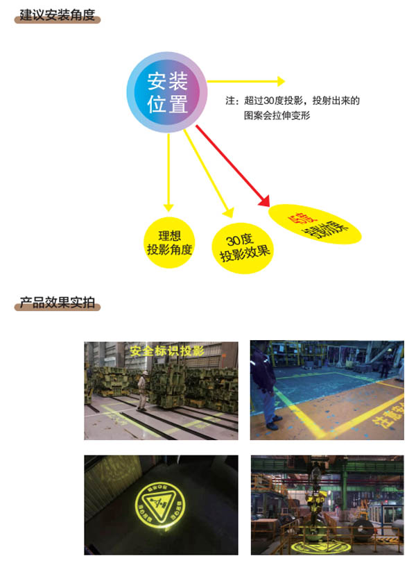 ABTY系列工業安全警示儀我公司自主研發,產品具有智能化,信息化等科技技術。是針對工業特殊環境和使用條件而單獨設計的,產品結構強度高、耐高溫、防水防塵、抗震、防掉落等特點。采用進口光源,使用壽命長、投影距離遠等優點?勺孕卸x警示區域大小和形狀、警示內容(如:“注意安全”、“危險區域”)等。廣泛用于冶金、有色、化工、煤礦、建筑等行業,是現代廠礦企業安全生產的重要輔助產品,為您的安全生產保駕護航。
