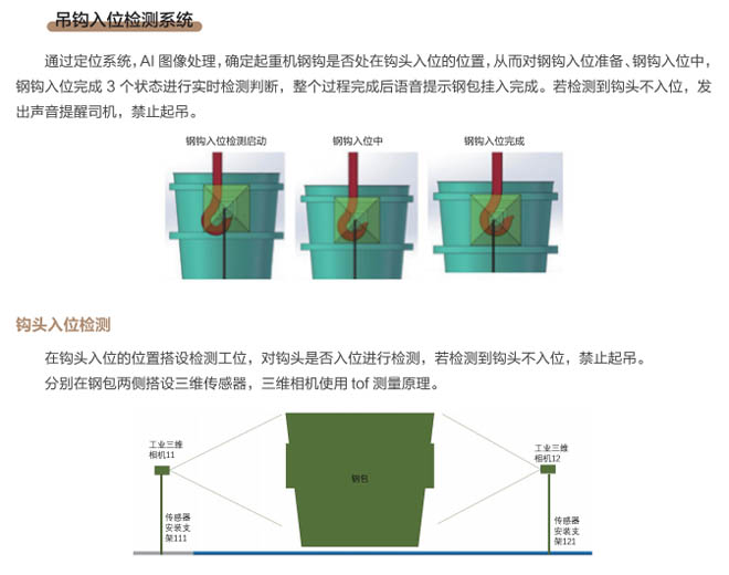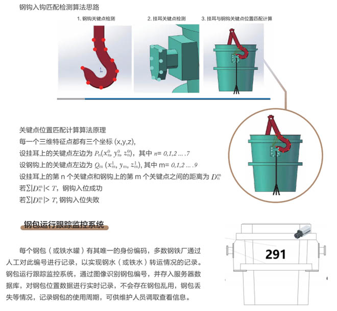 近年來,冶金行業(yè)智能化、自動(dòng)化、云時(shí)代等大數(shù)據(jù)廣泛應(yīng)用,煉鋼車間是冶金行業(yè)的重點(diǎn)區(qū)域,廠區(qū)設(shè)備復(fù)雜、環(huán)境差、安全隱患多等因素更需要進(jìn)行設(shè)備自動(dòng)化、智能化的升級(jí)管理、實(shí)現(xiàn)廠區(qū)無人化智慧工廠目標(biāo)的發(fā)展。起重機(jī)作為煉鋼、煉鐵、軋鋼車間的主要設(shè)備,起重機(jī)工作中對(duì)在工位操作越來越精準(zhǔn),需要駕駛員及時(shí)準(zhǔn)確觀察工位狀態(tài),由于駕駛室的位置和現(xiàn)場的工況環(huán)境影響經(jīng)常引起操作失誤,鋼包起吊安全事故頻發(fā),特別是對(duì)于鋼包掛鉤是否完整嵌入掛耳,是否進(jìn)入正確的起吊姿態(tài)沒有直接的判斷和監(jiān)控。研發(fā)起重機(jī)鋼包定位掛鉤識(shí)別管理系統(tǒng)是安全生產(chǎn)的剛性需求。