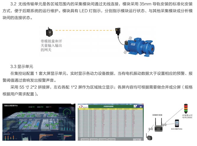3.4軟件系統需提供人機界面軟件,直觀指示電機等設備的振動數據;分析處理設備數據,判斷設備狀態,識別設備故障;提供設備狀態、報警信號等送至管理維護人員。